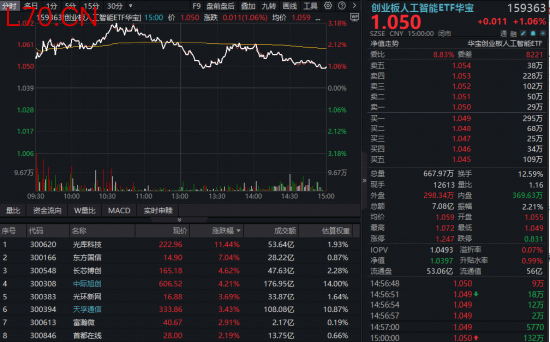 热门ETF方面,同类规模、流动性第一的创业板人工智能ETF华宝(159363)逆市突围收涨1.06%,放量成交超7亿元,资金近五日加仓超1亿元,市场波动下周线斩获四连阳!