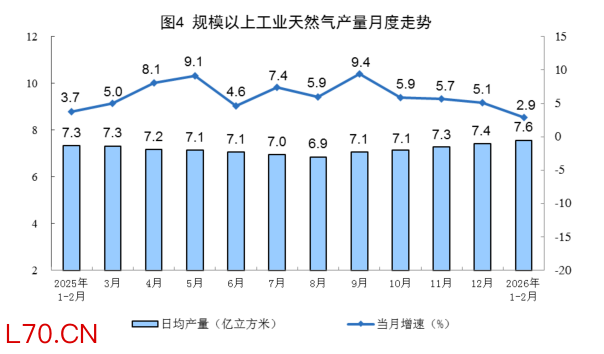 国家统计局:1—2月份,规上工业天然气产量同比增长2.9%