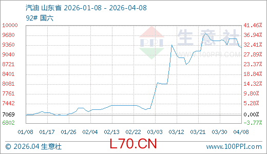 04月08日汽油9283.43元/吨 30天上涨6.84%