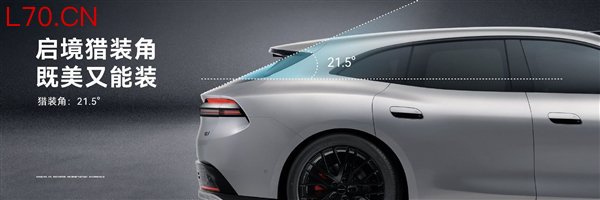 作为一款猎装车,姿态最为重要,启境GT7拥有百万超跑的宽体姿态、51.2%极致轮高、超59%轴长,以及21.5°的“启境猎装角”,拥有优雅感,又最大化保证了车尾空间。