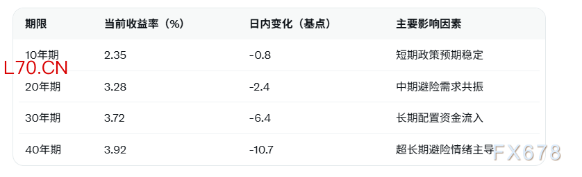 数据表明,40年期国债收益率在本次回调中的跌幅显著大于短中期品种,凸显长端债券对避险情绪的更高敏感度。