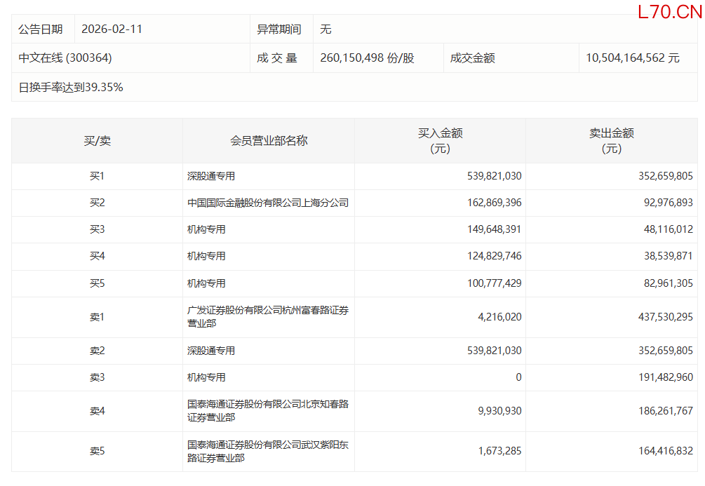 中文在线今日跌6%,3家机构专用席位净买入2.06亿元