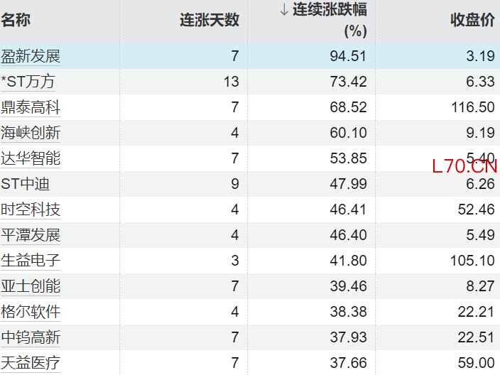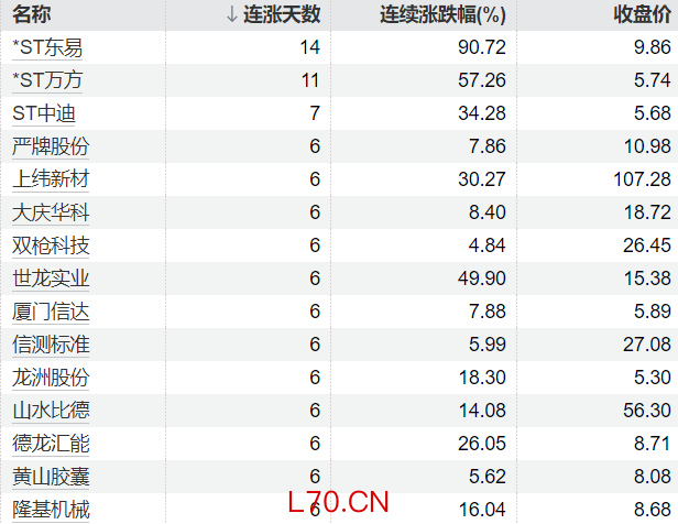 111只个股连续上涨5个交易日及以上