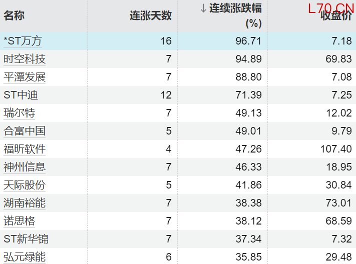 96只个股连续上涨5个交易日及以上