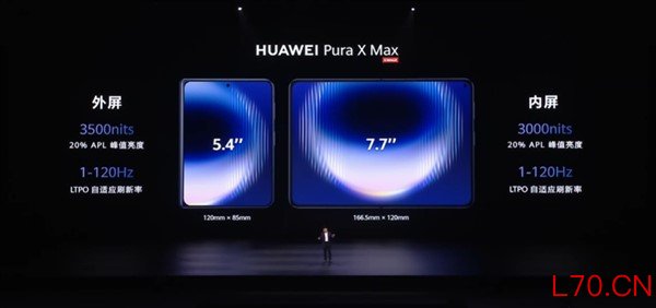 Pura X Max最核心的破局点在于其形态。余承东透露,该机的折叠与展开比例均脱胎于日常最常见的A4纸,旨在提供最符合人类直觉的“黄金阅读体验”。机身展开后,一块7.69英寸的WQHD+柔性OLED内屏映入眼帘,16:10的专属比例让其可视面积直逼小尺寸平板,在文档处理、影音消费和内容创作时视野极为舒展。而在折叠状态下,5.4英寸的外屏则保证了单手握持的轻便性,日常回微信、看导航完全无需展开,兼顾了效率与便携。