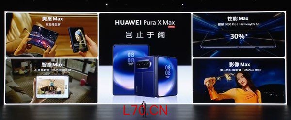 【TechWeb】今天下午,华为再次用颠覆性的产品形态刷新了折叠屏行业的边界——Pura X Max正式亮相。余承东在发布会上为其赋予了全新的品类名称:“大尺寸阔折叠手机”(简称“大阔折”)。这不仅是一次屏幕尺寸的简单放大,更是对折叠屏黄金比例的一次重新探索。