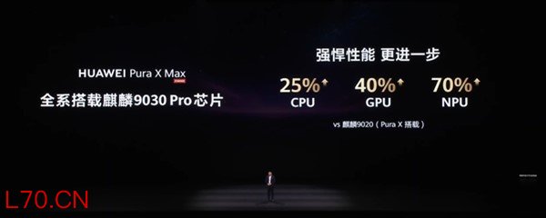 核心硬件方面,Pura X Max搭载了麒麟9030 Pro芯片,整机性能跃升30%(CPU+25%、GPU+40%、NPU+70%),并支持实时光线追踪硬加速,为高负载图形处理提供了算力保障。